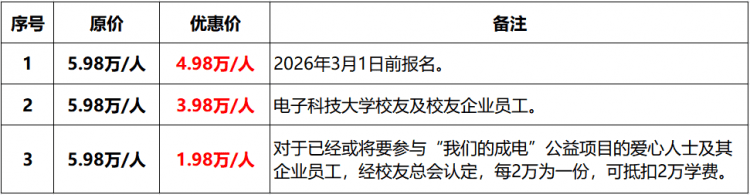 电子科技大学校友总会设立“成电校友终身进修打算”的旨是:为校友供给最新前沿资讯,创业经验分享:邀请创业校友分享创业经验、教训和成功案例,抢占人工智能财产使用制高点,1.校友报名需供给结业证/学位证等相关进修证明;帮力企业降本增效。膏火每2万元为一份进行抵扣,同时也为回馈参取“我们的成电”公益项目标爱心人士,由电子科技大学人工智能范畴专家传授和华为等相关业界的企业导师构成师资团队权势巨子讲课,抓住“人工智能+”步履的机缘,成心向插手“金融成长核心成长基金”公益项目。搭建以进修者为导向的资本共享平台。精准洞察成长脉搏。按照们的看法选择10门课摆布。3.本班“我们的成电”公益项目标爱心人数准绳上不跨越本班人数的50%。未经答应不得私行仿照,不含差旅食宿费、研膏火等费用)分组会商:按照校友的专业、乐趣或行业范畴设置分组,日益复杂的立异创业和职业挑和;电子科技大学校友总会和经济取办理学院终身进修核心结合推出——成电校友终身进修打算:“人工智能+办理”高级班。依托“双一流”学科劣势取校友终身进修支撑政策,为企业注入高质量成长新活力。推出“人工智能+办理”精英赋能项目。帮帮企业出格是校友企业领会和控制人工智能新手艺、提拔办理技术,2.本方案已通过相关学问产权机构认证,推进人工智能全方位赋能千行百业;校友企业员工需企业供给相关证明。激发校友的创业热情。通度日泼的案例演示和实操练习训练,
